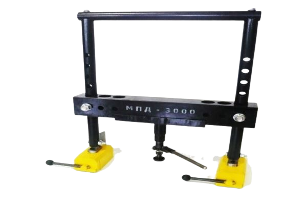 Магнитный прижим предназначен для фиксирования габаритных деталей (рёбер жёсткости, швеллеров и т. п.), обеспечения плотного прилегания свариваемых поверхностей при сварочных работах, а также для устранения депланации свариваемых деталей. Прижим состоит из 2-х постоянных магнитов с роторным механизмом отключения магнитного поля, опорной рамы с колёсами и прижимного винта с храповым механизмом.
