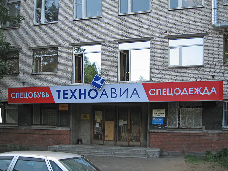 Получить пропуск на автомобиль у дежурного, (вход под вывеску "ТЕХНОАВИА"), въехать на территорию через шлагбаум, далее по прямой под двумя арками до двери с пандусом.
